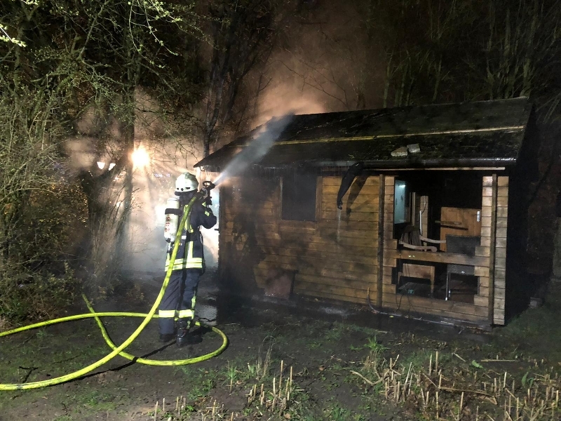 Seckenhausen-(hb) Am Dienstagmorgen um 01:27 Uhr wurde die Ortsfeuerwehr Seckenhausen mit dem Stichwort „Feuer 2, Schuppen am Wohnhaus in Vollbrand“ alarmiert. In der Holunderstraße brannte ein Holzunterstand an einer ca. 4×4 Meter großen Gartenhütte im rückwärtigen Bereich in voller Ausdehnung. Das Feuer wurde von 3 Trupps unter umluftunabhängigem Atemschutz mit 2 C-Rohren gelöscht. Um eventuelle Glutnester in der Zwischendecke auszuschließen wurde die Dachhaut geöffnet und mit einer Wärmebildkamera kontrolliert. Der Einsatz konnte nach etwas mehr als 3 Stunden beendet werden.