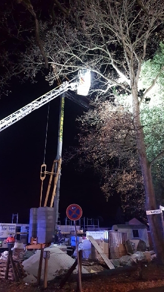 (ct) Um 17:49 Uhr wurde die Feuerwehr Stuhr über Meldeempfänger alarmiert. In der Straße „Zur Windhorst“ hatte sich ein Baukran beim Aufstellen auf einer Baustelle in der Krohne eines Baumes verfangen. Da große Äste herabzustürzen drohten, haben die Bauarbeiter die Feuerwehr gerufen. Beim Eintreffen wurde als erstes die direkt angrenzende Stuhrer Landstraße voll gesperrt, um eine Gefahr für vorbeifahrende Autos auszuschließen. Als die Gefährdung ausgeschlossen war, wurde der Kran wieder eingefahren. Da damit nicht alle Äste herabfielen, sondern noch beschädigte Äste in der Krone hingen und weiterhin herabzustürzen drohten, wurde die Drehleiter aus Brinkum nachalarmiert. Vom Korb der Drehleiter aus konnten die Äste erreicht und entfernt werden. Während des Einsatzes war die Stuhrer Landstraße zeitweise voll gesperrt, was zu einer Staubildung geführt hat. Verletzt wurde niemand. Der Einsatz konnte nach knapp zwei Stunden beendet werden.
