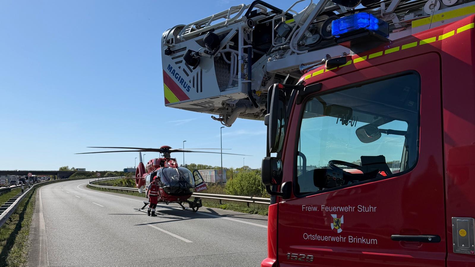 Im Anschluss wurde die Person mit einem Rettungshubschrauber in ein Krankenhaus geflogen. Für die Dauer der Rettungsmaßnahmen musste die Abfahrt in Richtung Oldenburg kurzzeitig voll gesperrt werden.