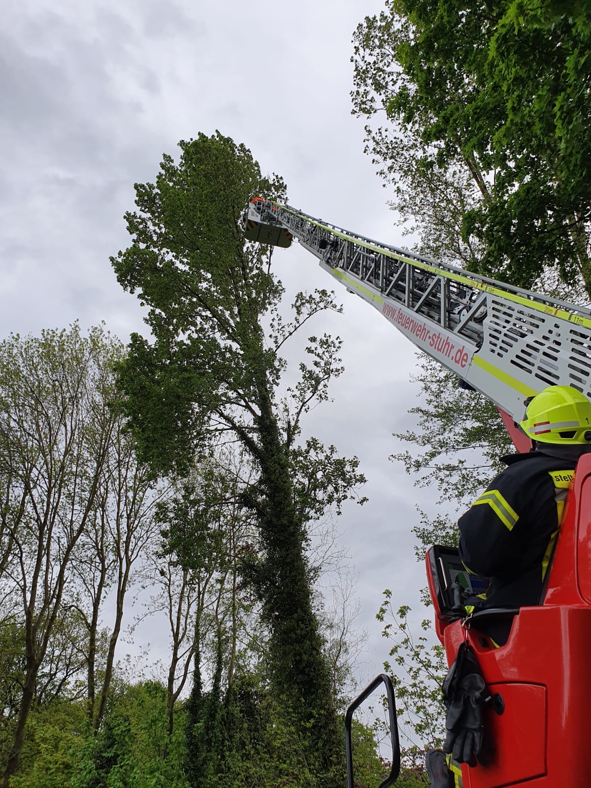Fahrenhorst – (nc) Am Freitagnachmittag wurde die Ortsfeuerwehr Fahrenhorst und die Drehleiter aus Brinkum zu einem Strumschaden in die Warwer Straße alarmiert . Am Einsatzort drohte ein Baum, der zuvor durch starken Wind sich gespalten hat, auf die Straße zu fallen. Die Baumkrone wurde aus dem Korb der Drehleiter abgetragen, bis der Stamm gefällt werden konnte und keine größeren Schäden dadurch entstanden . Für die Einsatzdauer von ca. 3 Stunden wurde die Warwer Straße voll gesperrt.