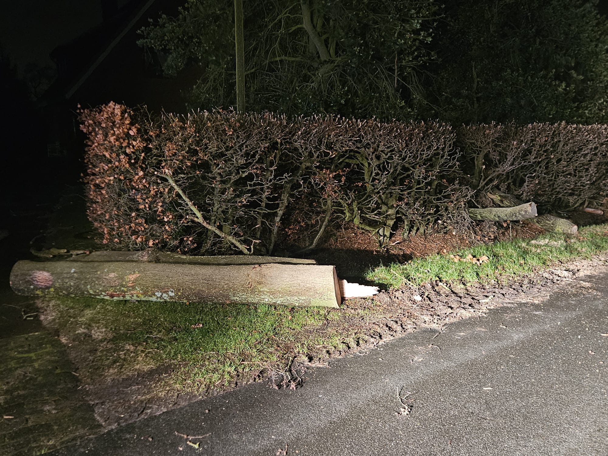 (ct) Heute Nachmittag um 16:59 Uhr wurde die Feuerwehr Stuhr über Melderempfänger zu einer technischen Hilfeleistung alarmiert. In der Heidestraße war durch den Wind ein Baum aus seiner natürlichen Lage befördert worden. Beim Umfallen hatte er sich auf der anderen Straßenseite in der Baumkrone verfangen und hing so quer über der Straße. Nach Absperrmaßnahmen wurde der Baum mit Hilfe eines Treckers mit Frontlader aus der Baumkrone befreit. Im Anschluss wurde er dann mittels Kettensägen zerteilen und am Straßenrand ablegen. Danach wurde die Straße noch mittels Besen gereinigt. Der Einsatz konnte nach 1 Stunde beendet werden.