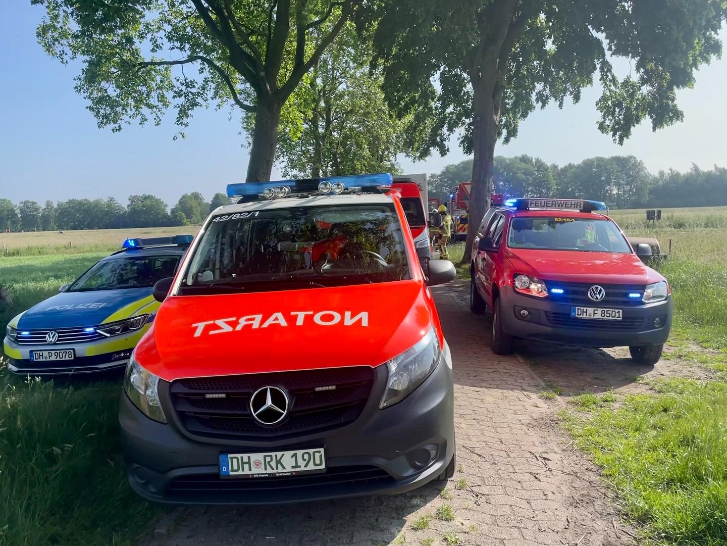 Brinkum-(cm). Die Feuerwehr Brinkum und der Rettungsdienst wurden am Mittwochmorgen um 09:04 Uhr zu einer Personenrettung nach Brinkum gerufen. In der Straße „An den Roden“, ist eine Radfahrerin plötzlich bewusstlos geworden und mit ihrem Fahrrad in einen wasserführenden Graben gefallen. Eine Passantin beobachtete den Vorfall aus der Ferne und handelte vorbildlich. Sie setzte den Notruf ab und konnte die Person im Graben, welche aufgrund von hochgewachsenen Gräsern nur sehr schwer einsehbar war, ausfindig machen und betreute diese bis zum Eintreffen der Rettungskräfte. Ein weiterer Passant stellte sich an die Straße um die Kräfte einzuweisen. Die Feuerwehr führte eine sofortige Rettung der Person durch und konnte diese zügig an den Rettungsdienst übergeben. Nach zirka einer Stunde war der Einsatz für die Feuerwehr wieder beendet.