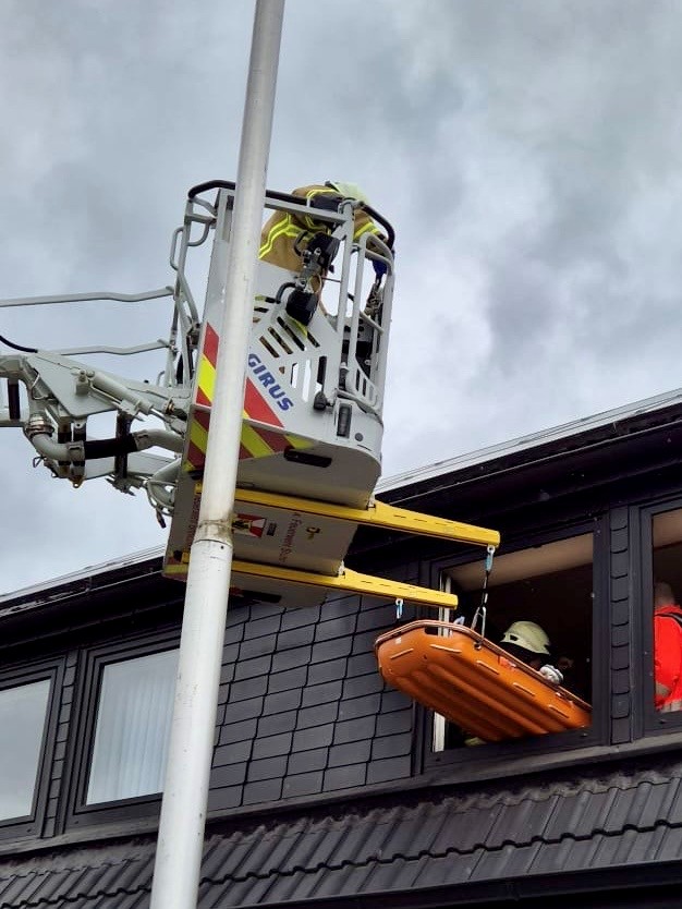 Brinkum-(cm). Die Drehleiter-Einheit der Feuerwehr Brinkum und der Ortsbrandmeister Heiligenrode wurden am Dienstagmorgen um 09:44 Uhr zu einer Personenrettung in den Stuhrer Ortsteil Heiligenrode gerufen. Im Rahmen eines Notarzteinsatzes musste der Patient aus dem Ersten Obergeschoss eines Einfamilienhauses über die Drehleiter nach unten zum Rettungswagen befördert werden. Nach einer Stunde war der Einsatz wieder beendet.