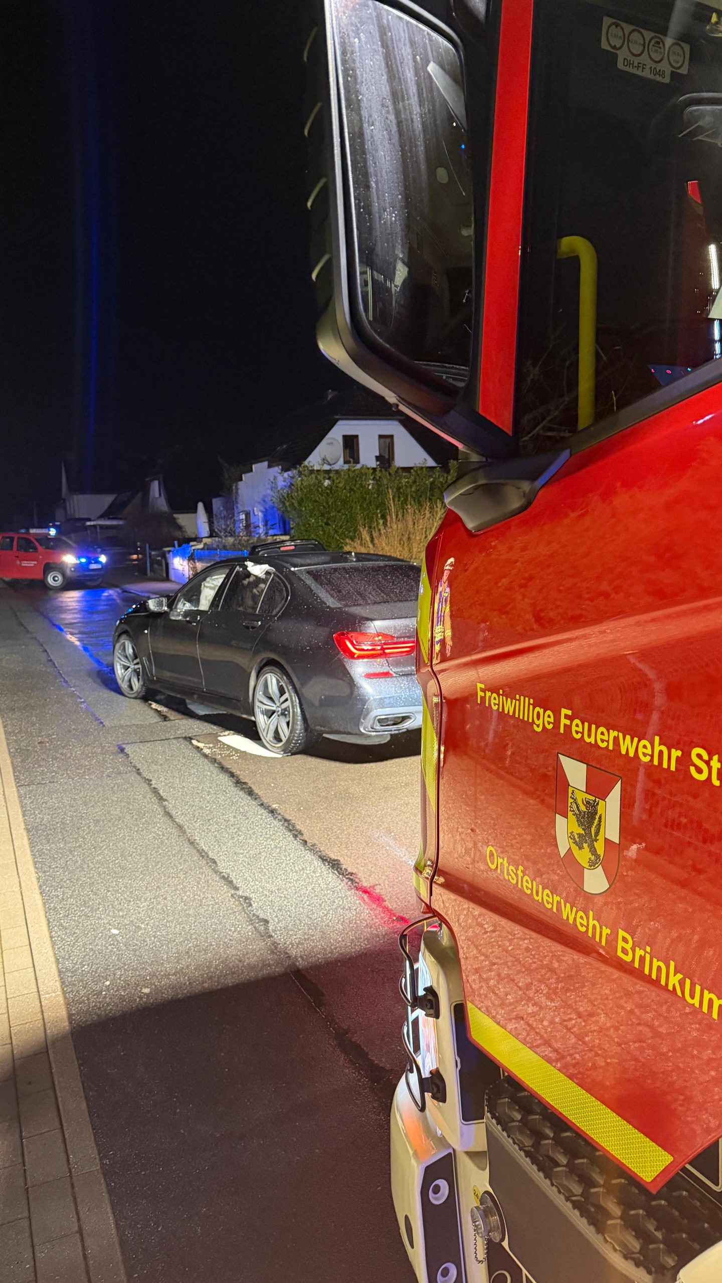 Brinkum-(nk). Am Montagabend um 19:54 Uhr wurde die Ortsfeuerwehr Brinkum während ihres Übungsdienstes gemeinsam mit dem Rettungsdienst zu einer technischen Hilfeleistung in die Feldstraße alarmiert. Die Leitstelle meldete einen Verkehrsunfall mit automatischer eCall-Auslösung ohne Sprechkontakt. Vor Ort stellte sich heraus, dass ein Pkw auf ein am Fahrbahnrand abgestelltes Fahrzeug aufgefahren war. Bei dem auffahrenden Fahrzeug hatten die Airbags ausgelöst. Zusätzlich wurde durch das Fahrzeug automatisch ein eCall-Notruf abgesetzt. Der Fahrer hatte sein Fahrzeug bereits eigenständig verlassen. Die Einsatzkräfte übernahmen bis zum Eintreffen des Rettungsdienstes die Erstversorgung der leicht verletzten Person, sicherten die Einsatzstelle ab und reinigten den betroffenen Straßenbereich. Nach rund 45 Minuten konnte der Einsatz beendet werden.