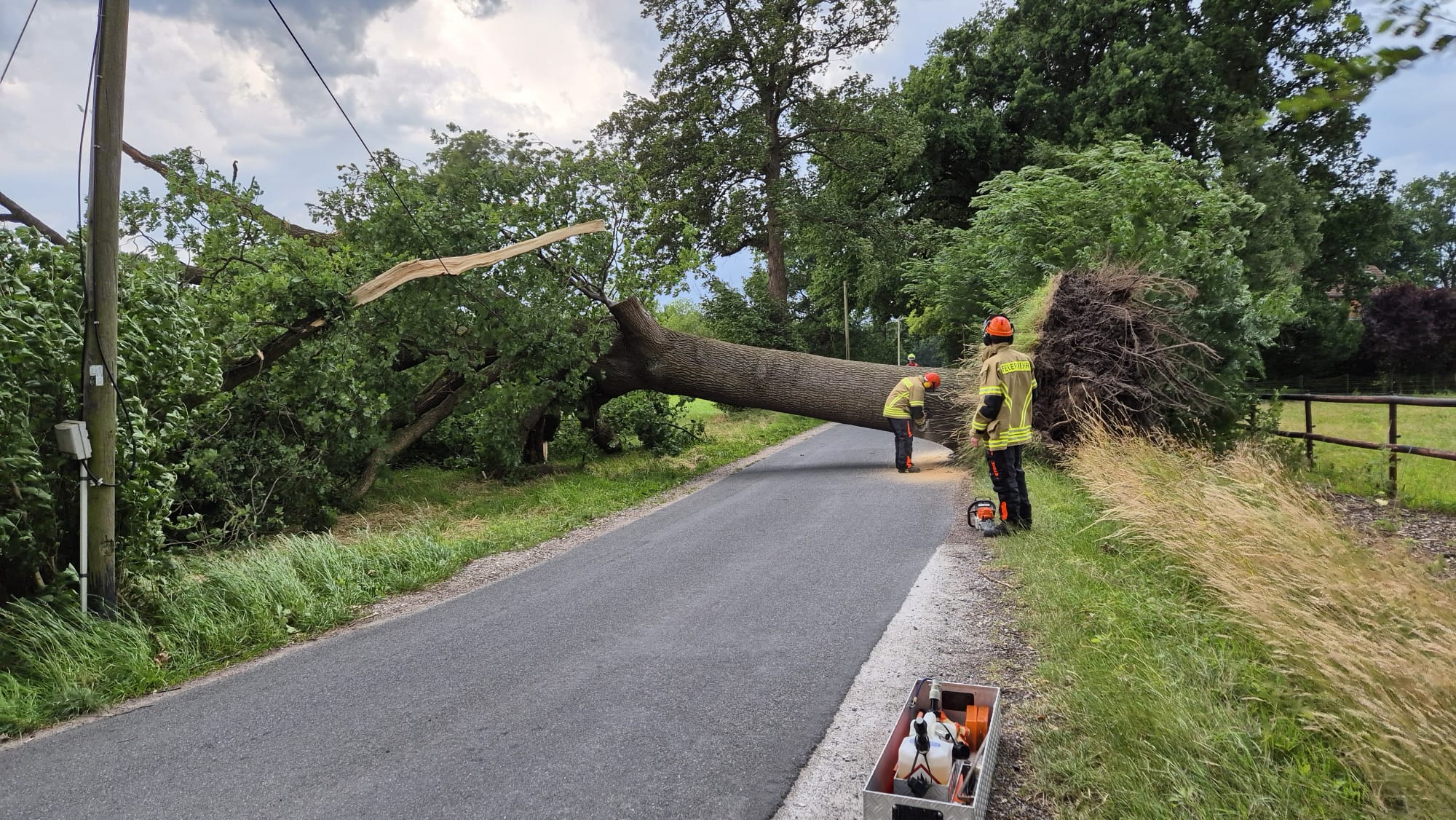 Vor Ort eingetroffen kamen mehrere Kettensägen zum Einsatz um den Baum zu zersägen. Die großen Stammteile wurden im Anschluss mithilfe eines Treckers im Seitenraum abgelegt. Die Straße war nach einer knappen Stunde wieder frei.