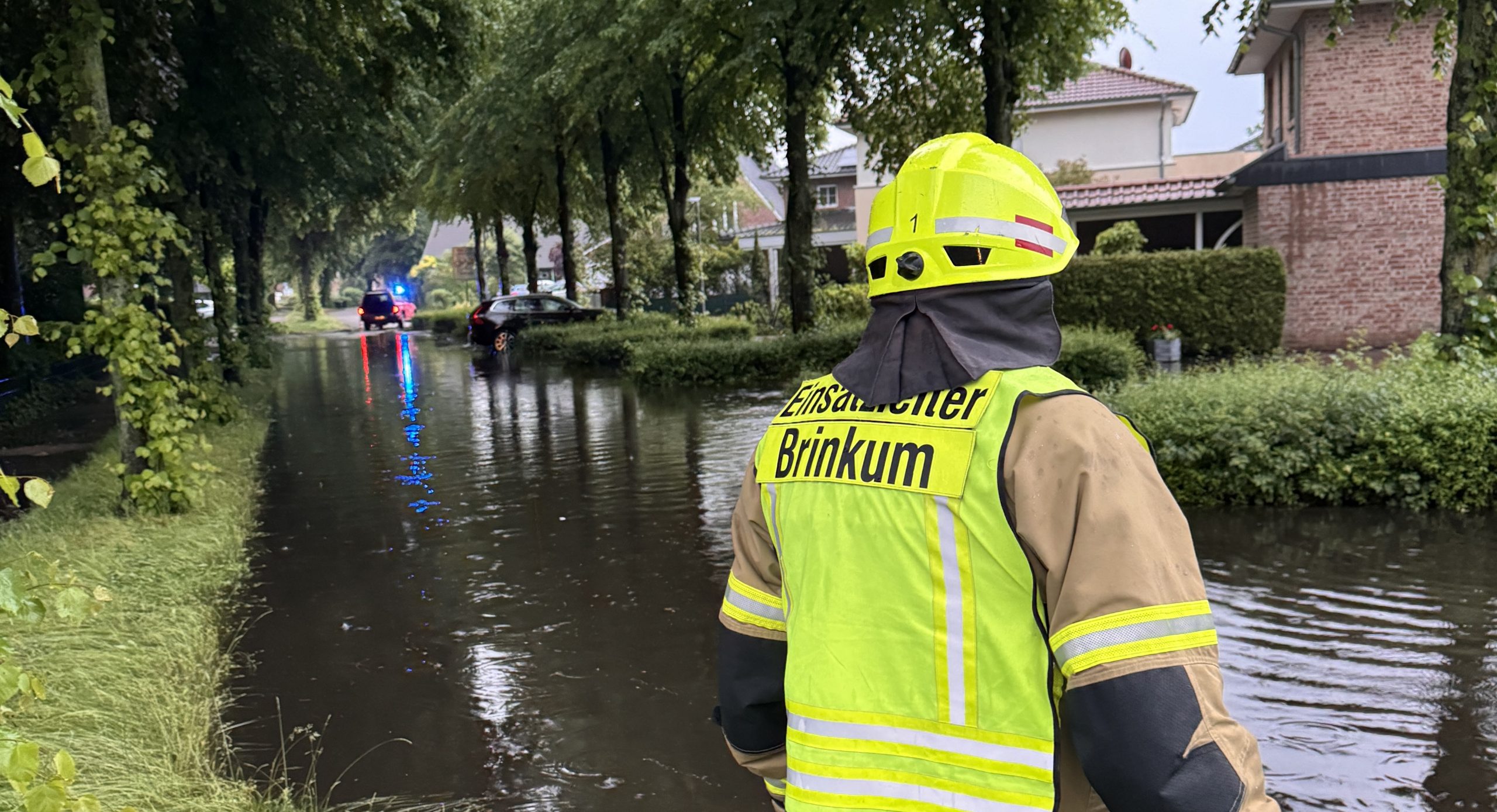 Brinkum(nk). Am Freitagabend um 20:35 Uhr wurde die Ortsfeuerwehr Brinkum nach einen kurzen etwas stärkeren Regen zu einer technischen Hilfeleistung in die Studtriede gerufen. Laut Meldung der Leitstelle aus Diepholz sollte es hier dazu gekommen sein dass ein Teilabschnitt der Straße unter Wasser stand. Bei Eintreffen der ersten Einsatzkräfte bestätigte sich die Lage. Die betroffene Straße stand auf einer Länge von gut 300 Metern ca 25cm unter Wasser. Die Feuerwehr öffnete mittels Schachthacken die betroffenen Kanalisationsdeckel sodass das Wasser wieder ablaufen konnte. Nach gut 2 Stunden konnte der Einsatz wieder beendet werden.