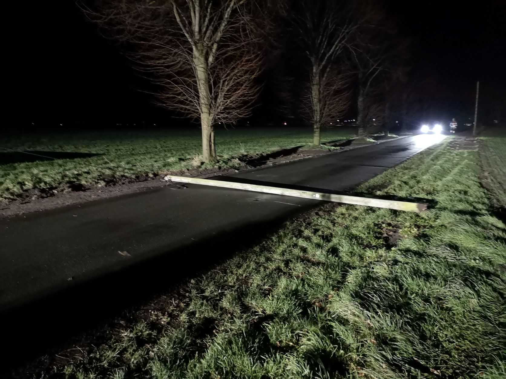 Heiligenrode 30.01.2022 (rs) Um 00:35 Uhr wurde die Feuerwehr Heiligenrode, zu einem umgestürzten Telefonmast in der Bürsteler Straße in Heiligenrode, per Meldeempfänger alarmiert.