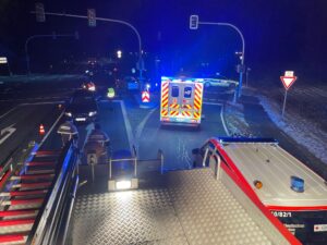 Zu einem weiteren Einsatz der Feuerwehr Fahrenhorst kam es am frühen Montagabend auf der B51. Die Fahrzeugbesatzung kam auf einen Verkehrsunfall zu bei dem zwei Fahrzeuge miteinander kollidiert waren. Die Besatzung übernahm die Betreuung der Beteiligten bis zum Eintreffen des Notarztes und des Rettungsdienstes. Im Anschluss wurden auslaufende Betriebsmittel abgestreut und die Einsatzstelle für die Unfallaufnahme der Polizei ausgeleuchtet.
