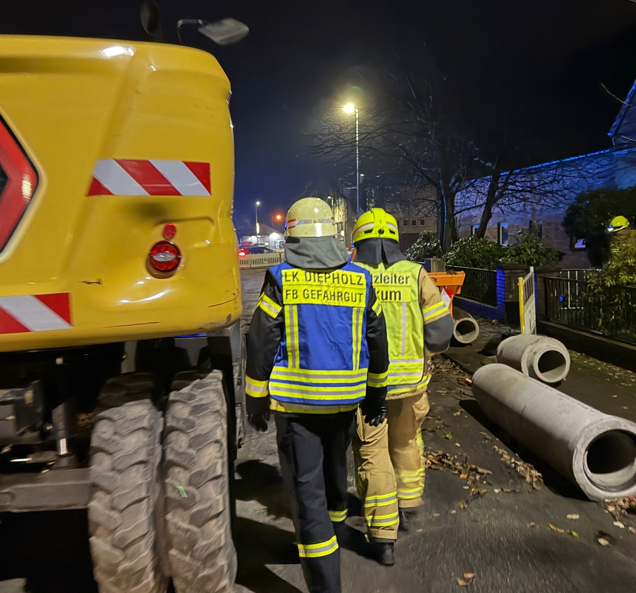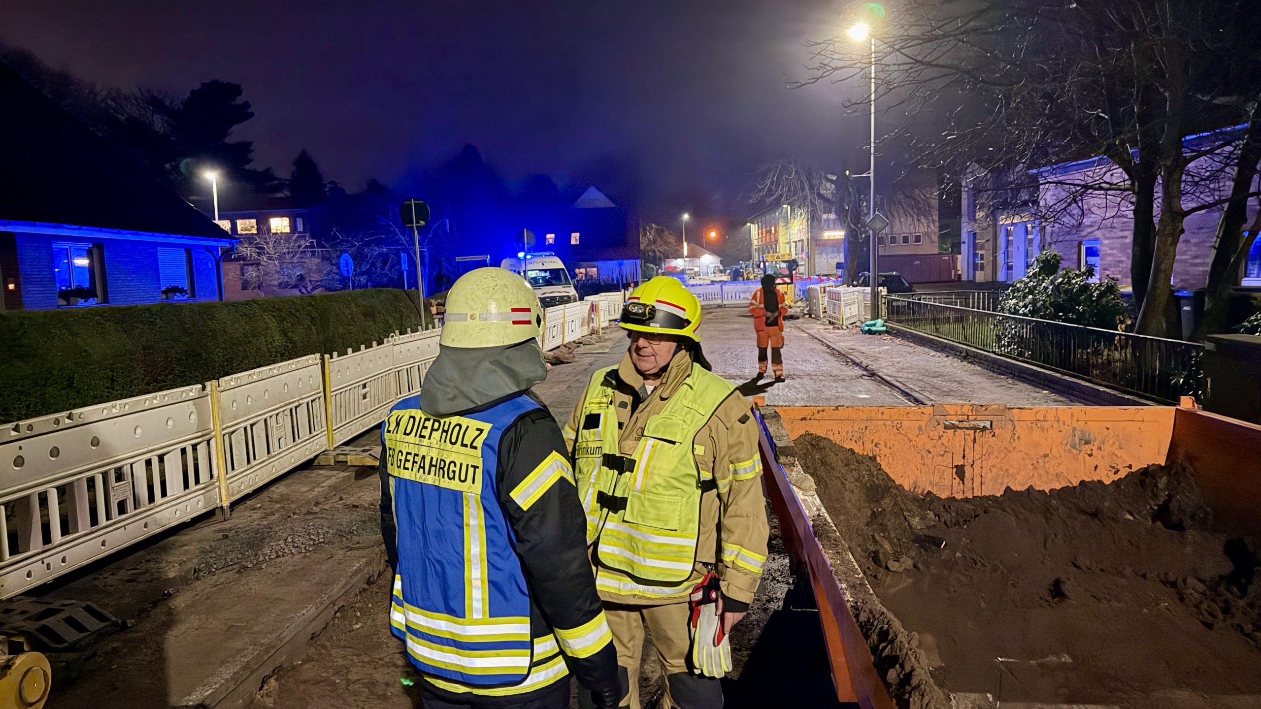 Brinkum (mg). Die Feuerwehr Brinkum und Groß Mackenstedt wurden am Dienstagabend um 17:14 Uhr zusammen mit dem Einsatzleitwagen aus Fahrenhorst und dem Rettungsdienst zu einem möglichen Gasaustritt auf einer Baustelle in der Bahnhofstraße alarmiert.