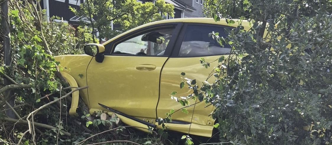 Hier war ein PKW mit zwei Personen in ein größeres Gebüsch gefahren. Die beiden Personen waren im PKW eingeschlossen und kamen nicht mehr selbstständig heraus. Um die Türen öffnen zu können, mussten einige dicke Äste der Hecke mit einer Kettensäge entfernt werden und es kam ein hydraulisches Rettungsgerät zum Einsatz.
