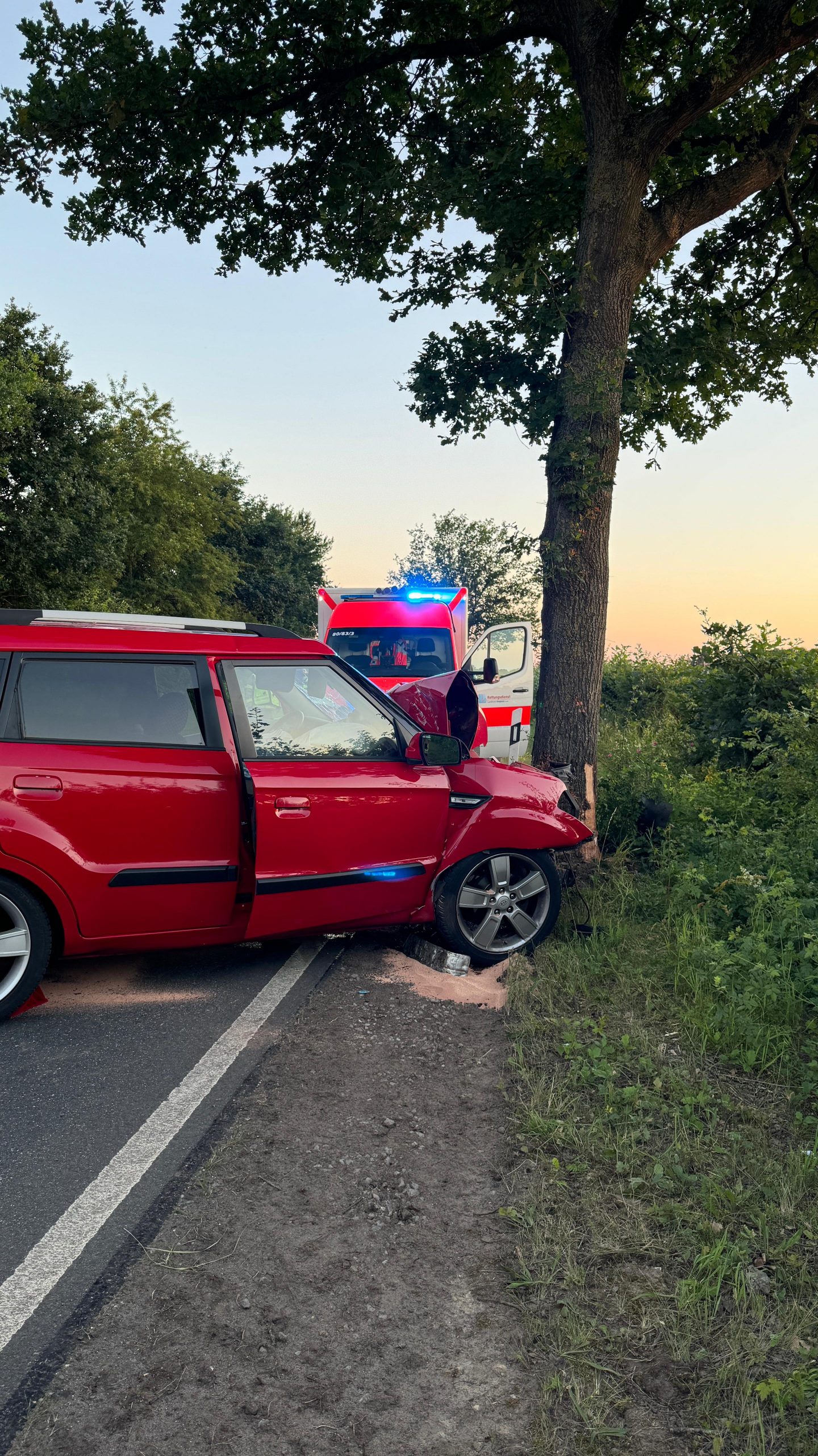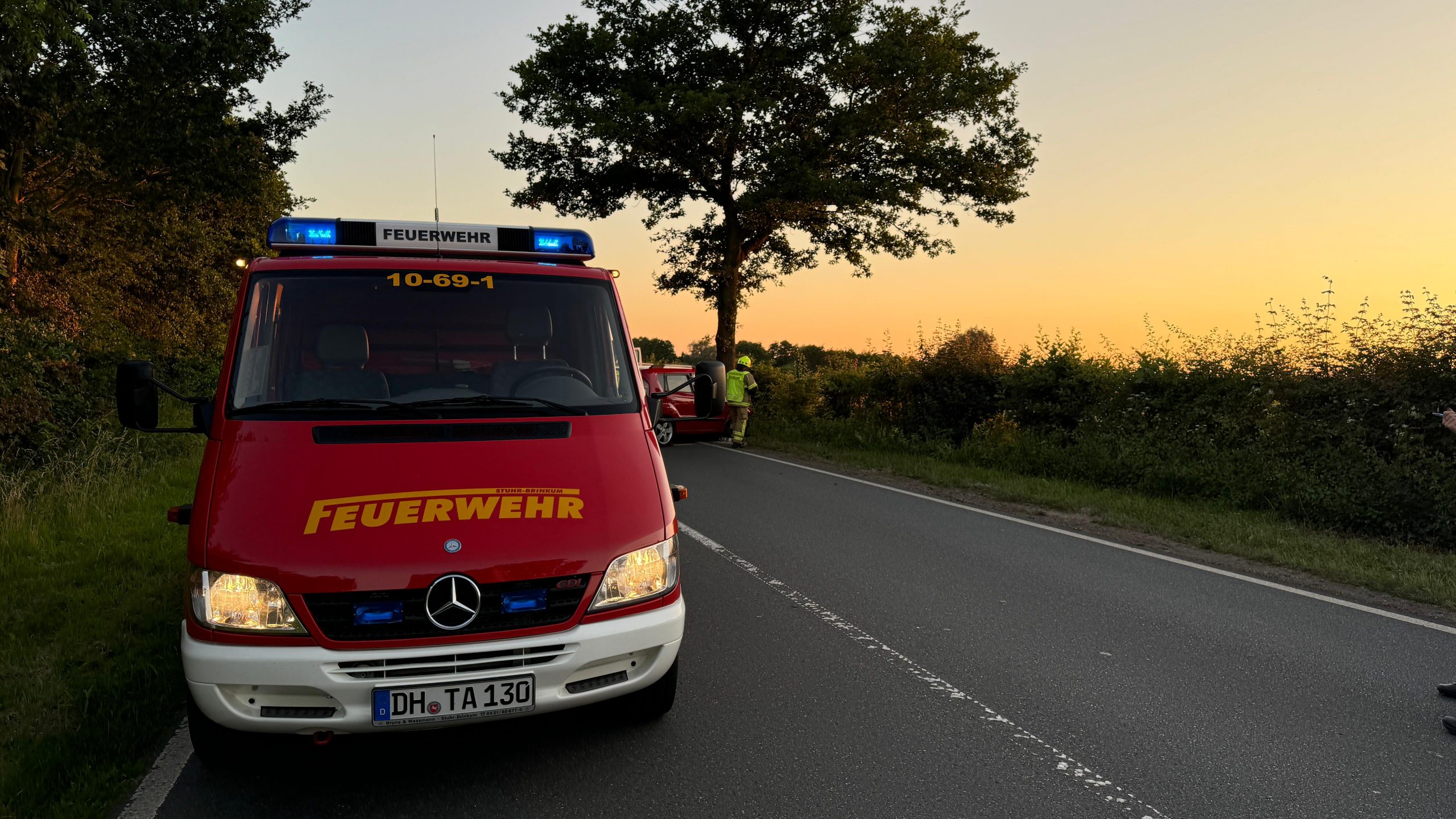 Brinkum-(cm). Die Feuerwehren Brinkum und Gr. Mackenstedt wurden Dienstagabend um 21:15 Uhr zu einem Verkehrsunfall nach Brinkum-Nord gerufen. Auf der Carl-Zeiss-Straße war ein PKW gegen einen Baum geprallt. Der Fahrer sollte laut ersten Meldungen dabei in seinem Fahrzeug eingeklemmt worden sein. Bei Eintreffen der Feuerwehr, hatte der Rettungsdienst bereits eine Sofortrettung durchgeführt und den schwer verletzten Fahrer aus seinem Fahrzeug befreien können. Die Feuerwehr stellte vor Ort den Brandschutz sicher und verhinderte die Ausbreitung von auslaufenden Betriebsstoffen. Des weiteren unterstützten die Kräfte die Polizei bei Absperrmaßnahmen. Nach 90 Minuten war der Einsatz für die Feuerwehr beendet.