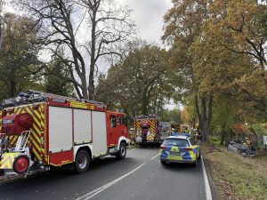 Durch die Feuerwehr wurde neben der technischen Rettung auch der Brandschutz an der Einsatzstelle sicher gestellt. Die Varreler Landstraße war für die Einsatzdauer von ca. 1,5 Stunden voll gesperrt.