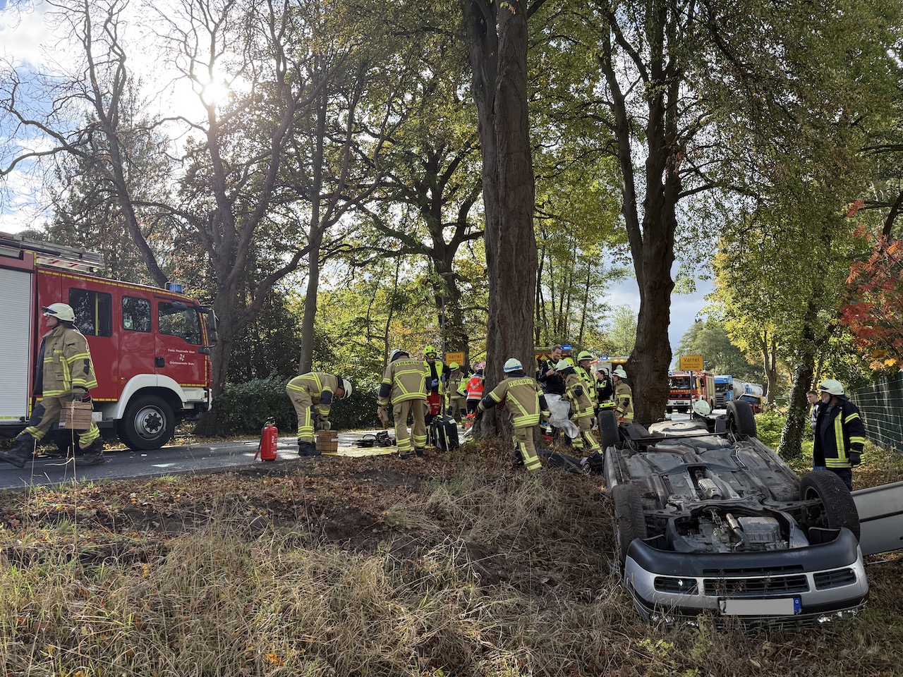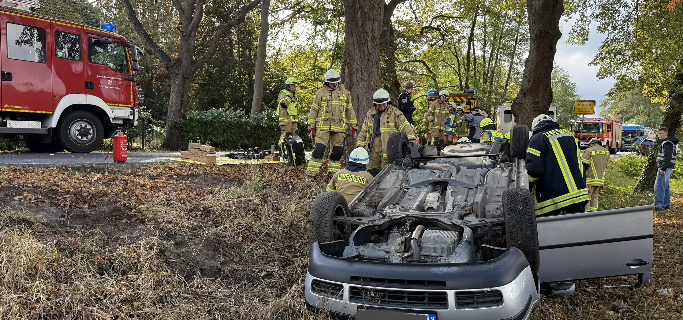 (ct) Am Freitagmittag um 13:58 Uhr wurde die Feuerwehren Stuhr und Gr.Mackenstedt zu einem Verkehrsunfall alarmiert. Gemeldet wurde, dass sich ein mit zwei Personen besetzter PKW in der Varreler Landstraße im Ortsteil Varrel überschlagen haben soll.