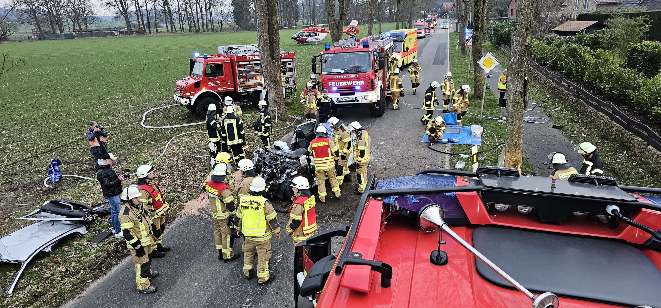 Dort war ein PKW Frontal mit einem Baum kollidiert, die Fahrerin wurde in Ihrem PKW Schwer eingeklemmt. Aufgrund der Nähe und der Rüstwagen aus Harpstedt nicht einsatzbereit war wurde die Rüsteinheit durch die Leitstelle Oldenburg zusätzlich zu den zuständen Ortsfeuerwehren angefordert.