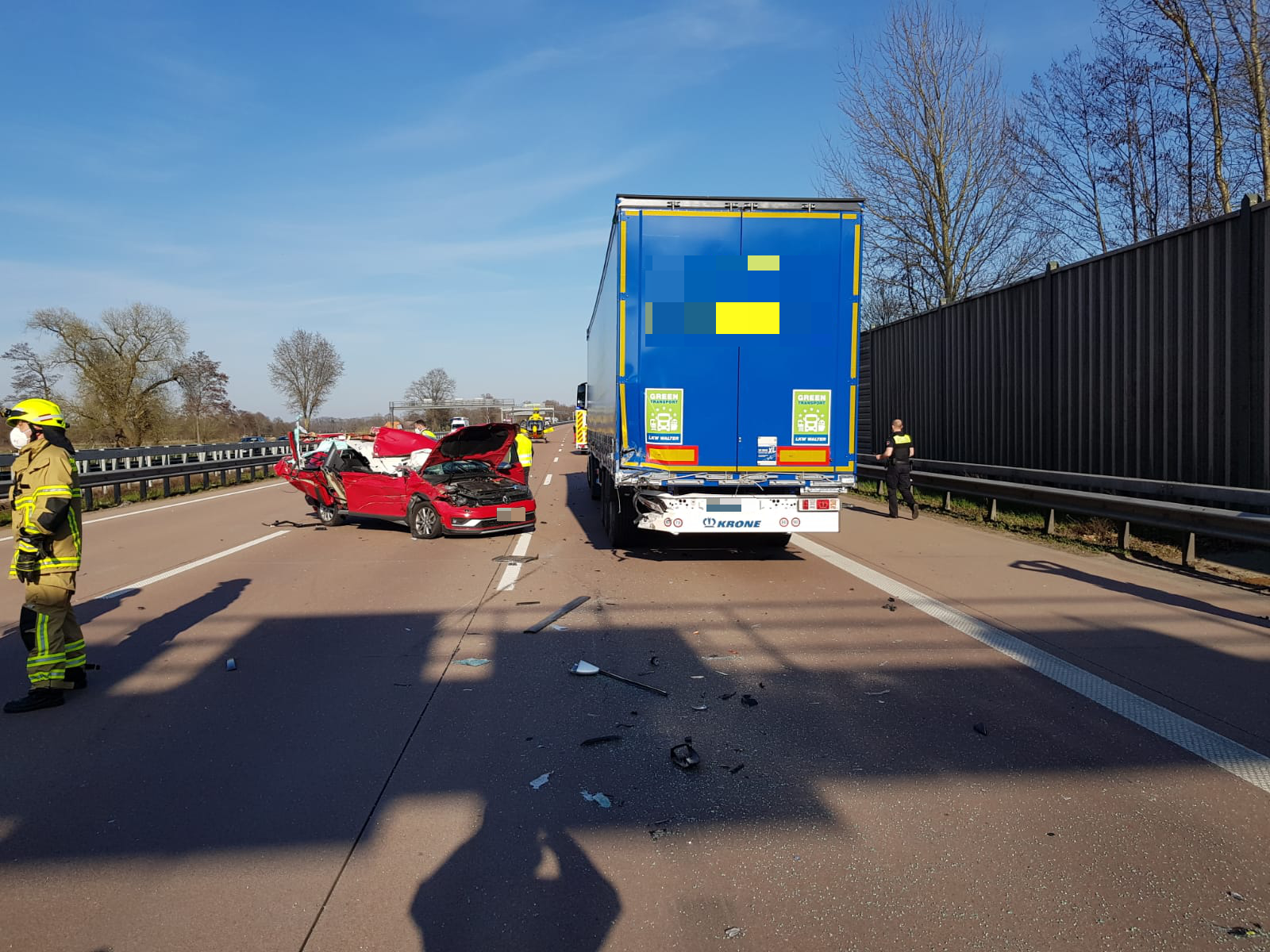 Gr. Mackenstedt-(ps). Um 17:02 Uhr wurde die Feuerwehr Groß Mackenstedt über Meldeempfänger und Sirene zu einem Verkehrsunfall mit eingeklemmter Person auf die Autobahn 1 zwischen dem AD Stuhr und AS alarmiert.