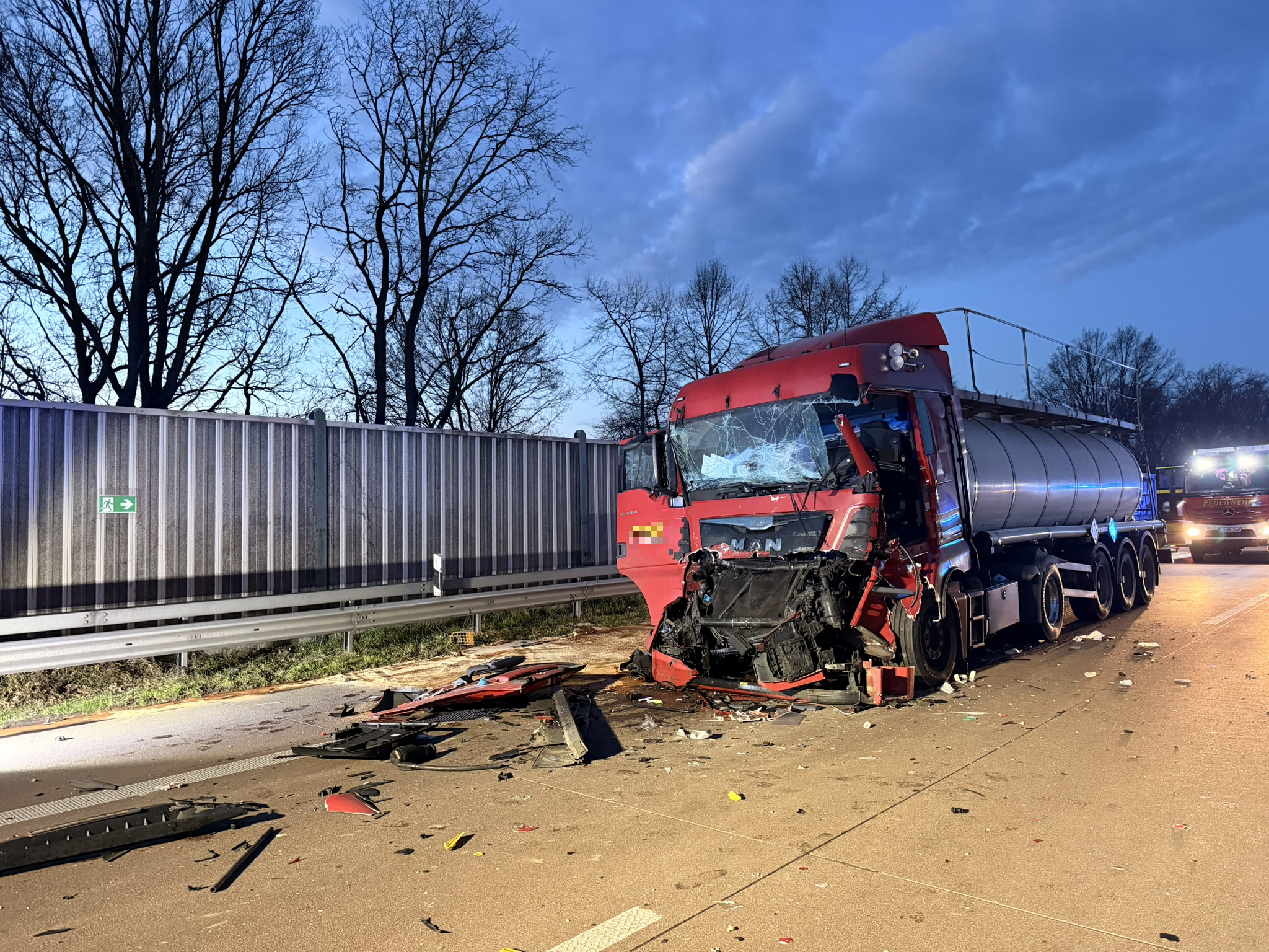 Weiterhin kontrollierte die Feuerwehr den Tank Auflieger des LKW da dieser Gefahrgut geladen hatte ob von diesen eine weitere Gefahr ausgeht, was sich aber nicht bestätigte. Die Feuerwehr stellte den Brandschutz an der Einsatzstelle sicher. Außerdem wurden ausgelaufenen Betriebsstoffe abgestreut. Die Autobahn war für die Einsatzdauer von ca. 2 Stunde voll gesperrt.