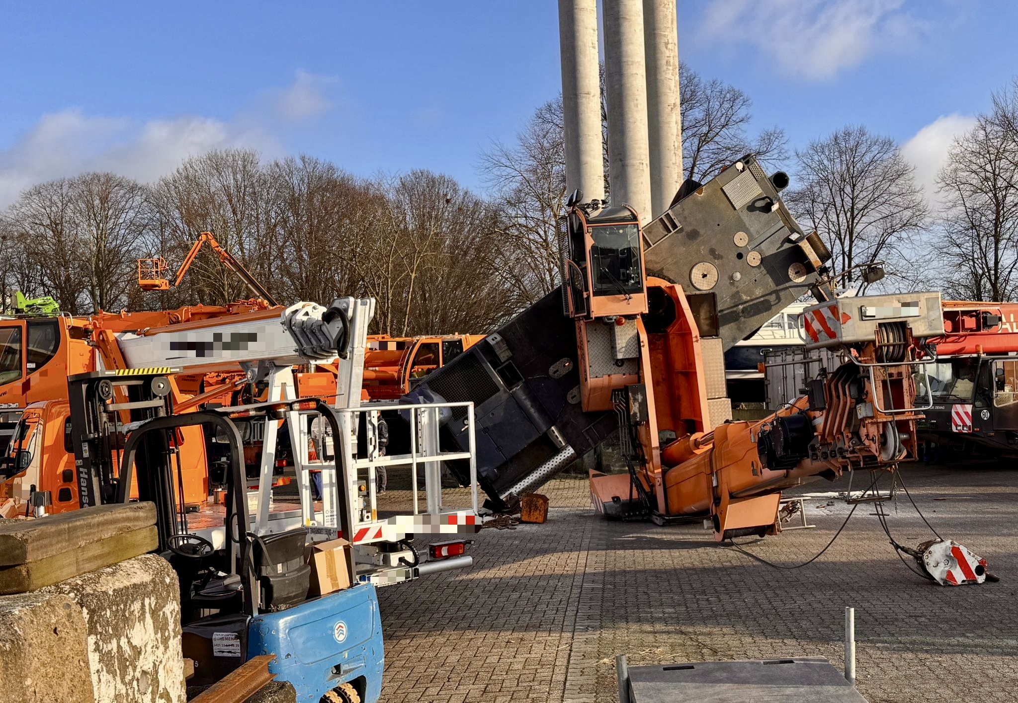 Brinkum-(cm). Am Donnerstagnachmittag um 14:30 Uhr wurden die Feuerwehren Brinkum und Groß Mackenstedt sowie der Einsatzleitwagen aus Fahrenhorst und Einheiten des Rettungsdienstes zu einem Betriebsunfall nach Brinkum-Nord gerufen. Auf einem Firmengelände in der Henleinstraße war ein 40-Tonnen-Autokran umgestürzt, wobei der Kranführer in zirka fünf Metern Höhe in der Kabine eingeschlossen wurde. Bereits vor dem Eintreffen der Feuerwehr hatten die Mitarbeiter des Unternehmens vorbildlich gehandelt, indem sie eine unternehmenseigene Arbeitsbühne neben der Kabine platzierten und den Kranführer betreuten. Die Feuerwehrkräfte übernahmen die Beförderung der eingeschlossenen Person über die Arbeitsbühne hinunter, woraufhin der Fahrer zur Untersuchung an den Rettungsdienst übergeben wurde. Die Ausbreitung von ausgetretenem Hydrauliköl konnte mit den eigenen Mitteln des Unternehmens erfolgreich eingedämmt werden. Nach einer Stunde war der Einsatz für die Feuerwehr abgeschlossen.