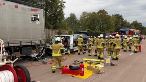 Weiterhin stellte die Feuerwehr den Brandschutz an der Einsatzstelle sicher und streute auslaufende Betriebsstoffe ab. Der Einsatz der Feuerwehr konnte nach knapp 1,5 Stunden beendet werden. Die Autobahn 1 war für die Dauer der Rettungsmaßnahmen voll gesperrt.