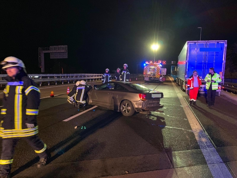 (ct) In der Nacht von Freitag auf Samstag wurde die Feuerwehr Gr.Mackenstedt um 3:21 Uhr über Sirene und Meldeempfänger zur einem Verkehrsunfall alarmiert. Auf der BAB1 zwischen dem AD Stuhr und der AS Gr.Ippener in Fahrtrichtung Osnabrück war es kurz hinter dem AD Stuhr zu einem Verkehrsunfall gekommen. Ein PKW war nach rechts von der Fahrbahn abgekommen und mit der Leitplanke kollidiert. Gemeldet war, dass der Fahrer des PKW in seinem Fahrzeug eingeklemmt sein sollte. Beim Eintreffen konnte festgestellt werden, dass der Fahrer den PKW bereits aus eigener Kraft verlassen konnte. Er wurde bereits vom Rettungsdienst versorgt und anschließend leicht verletzt zur weiteren Untersuchung in ein Krankenhaus gebracht.