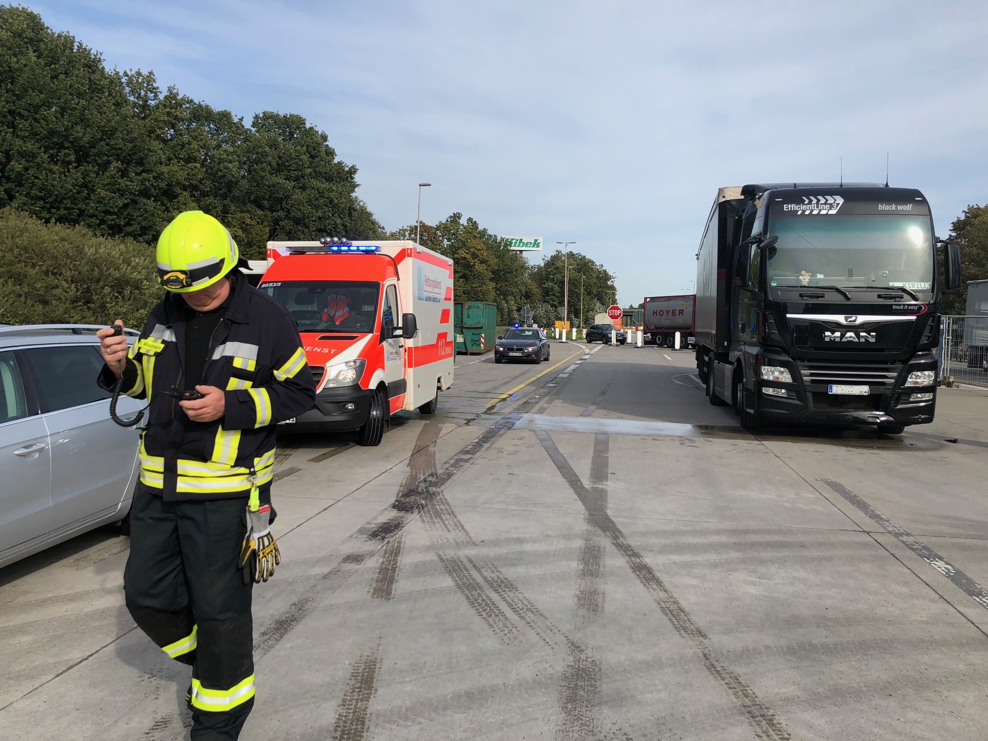 Brinkum-(cm). Am Montagnachmittag um 15:11 Uhr wurden die Feuerwehren Brinkum und Groß Mackenstedt zu einem Verkehrsunfall auf die Bundesautobahn 1 gerufen. Im Bereich der Auffahrt Brinkum, in Fahrtrichtung Osnabrück, kam es zu einem Auffahrunfall zwischen LKW und PKW. Die beiden Insassen des PKW, auf dem der Sattelauflieger aufgefahren war, wurden bei dem Zusammenstoß leichtverletzt. Die Besatzung des Brinkumer Kommandowagen führte eine Medizinische Erstversorgung durch und betreute die Verletzten Personen bis zum eintreffen des Rettungsdienstes. Weitere Kräfte der Ortsfeuerwehren waren an der Einsatzstelle nicht mehr erforderlich. Nach 45 Minuten konnte die Einsatzstelle an die Polizei übergeben und der Einsatz für die Feuerwehr wieder beendet werden.