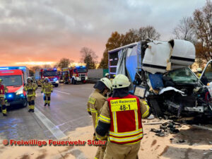 (ct) Heute Nachmittag um 15:26 Uhr wurden die Feuerwehren Groß Mackenstedt und Brinkum mit dem Stichwort „Verkehrsunfall – eingeklemmte Person“ alarmiert. Einsatzort war die Autobahn 1 zwischen dem Autobahndreieck Stuhr und der Anschlussstelle Brinkum in Fahrtrichtung Hamburg. Kurz vor der Anschlussstelle Brinkum war ein Kleintransporter auf einen staubedingt stoppenden LKW aufgefahren.