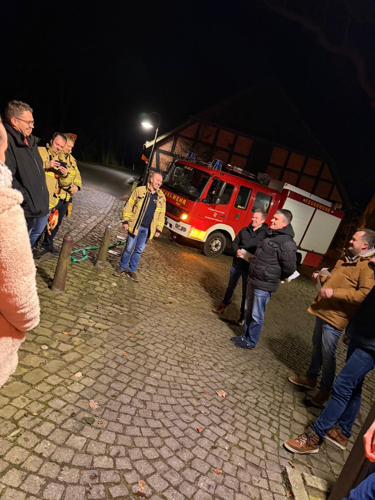 zu einer symbolischen Fahrzeugübergabe zusammen, da das bisher in Gr. Mackenstedt stationierte Löschgruppenfahrzeug 10/6