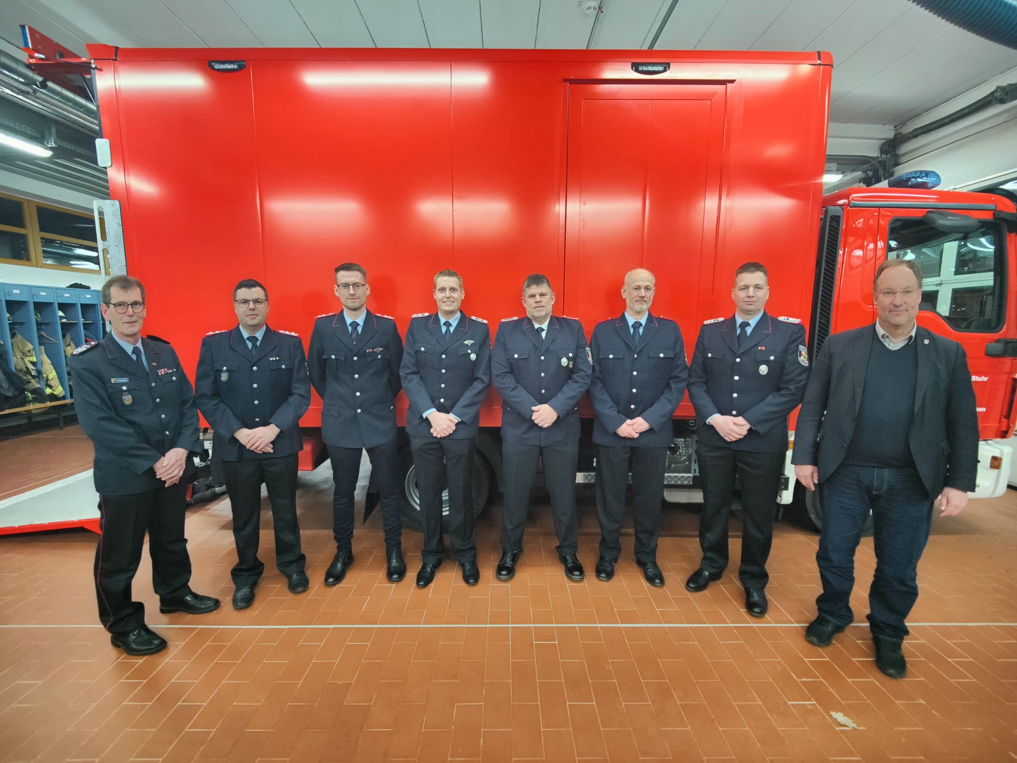 Wahlen des Ortskommandos der Ortsfeuerwehr Brinkum https://www.feuerwehr-stuhr.de/aktuelles-presse/wahlen-des-ortskommandos-der-ortsfeuerwehr-brinkum/ Sun, 16 Nov 2025 13:17:51 +0000 https://www.feuerwehr-stuhr.de/?p=19574 Brinkum – (cm). Am 16. November 2025 wählte die Ortsfeuerwehr Brinkum im Rahmen ihrer Mitgliederversammlung die weiteren Positionen des Ortskommandos. Nachdem Ortsbrandmeister Thomas Erdt und sein Stellvertreter Rolf Wiechmann bereits im September bestätigt worden waren, standen nun die Wahlen des Zugführers, der Gruppenführer sowie weiterer Funktionsträger auf der Tagesordnung.