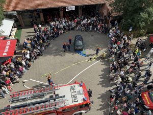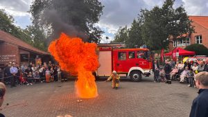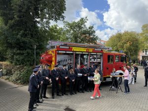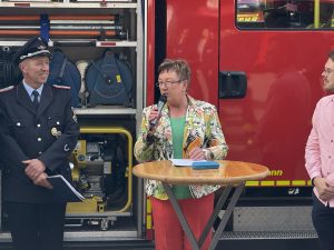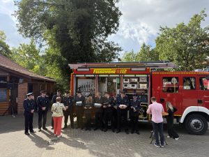 (ct) Während des Tages der offenen Tür wurde eine Ehrung des Landes Niedersachsen vollzogen. Die Stellvertretende Bürgermeisterin der Gemeinde Stuhr Frau Sigrid Rother hatte die Ehre die Auszeichnungen zu übergeben. Es handelt sich hier um die Hochwasser-Ehrennadel 2023. Diese Ehrung wurde für den Einsatz an den Weihnachtsfeiertagen im Jahr 2023 verliehen. Die Ehrungen wurden an je eine Abordnung der einzelnen Ortswehren übergeben. Die Ehrung der einzelnen Kameraden wird dann auf Ortsebene vollzogen. Der Ortsfeuerwehr Brinkum wurde ein Dank für die Sicherstellung des Brandschutzes während der Einsatzzeit ausgesprochen.