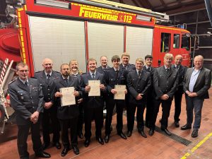 Der Gemeindejugendfeuerwehrwart Jens Kleemeyer berichtete von den Aktivitäten der anderen Jugendfeuerwehren. So wurde an 19 Jugendliche nach erfolgreicher Prüfung am 29.03.2025 in Vechta die Jugendflamme Stufe 1 und am 23.11.2025 an 18 Jugendliche die Jugendflamme Stufe 2 verliehen.