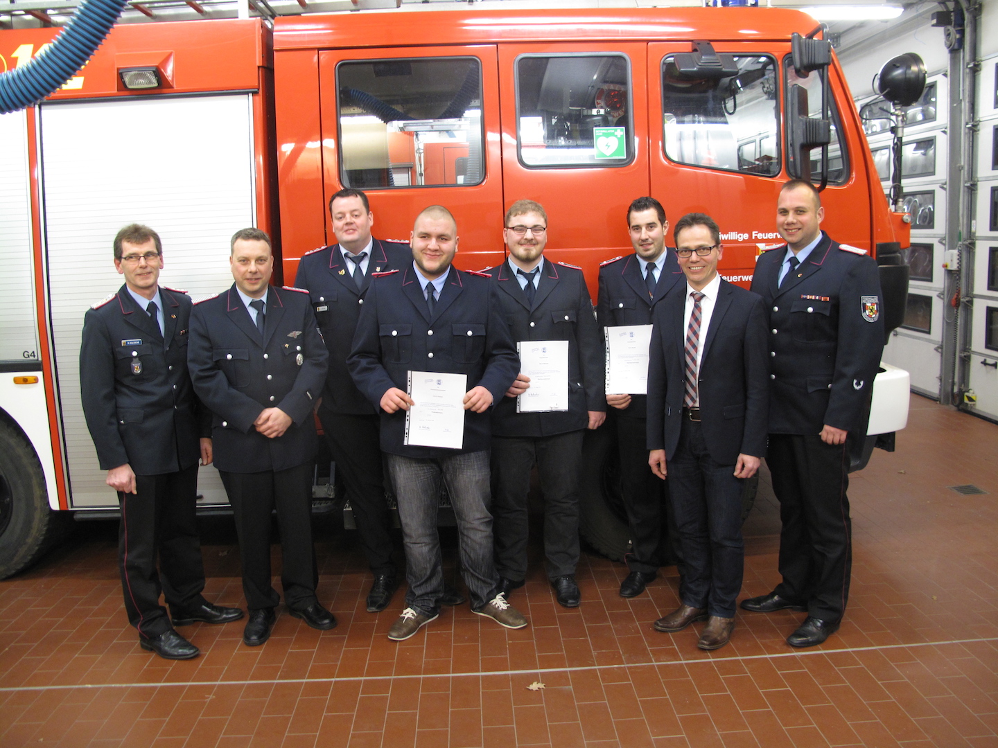 v.l.n.r.: Michael Kalusche, Bernd Dücker (stellv. Ortsbrandmeister), Dennis Rösing, Jannis Wessels, Eike Holthusen, Kevin Brode, Hartmut Martens, Henning Bolte