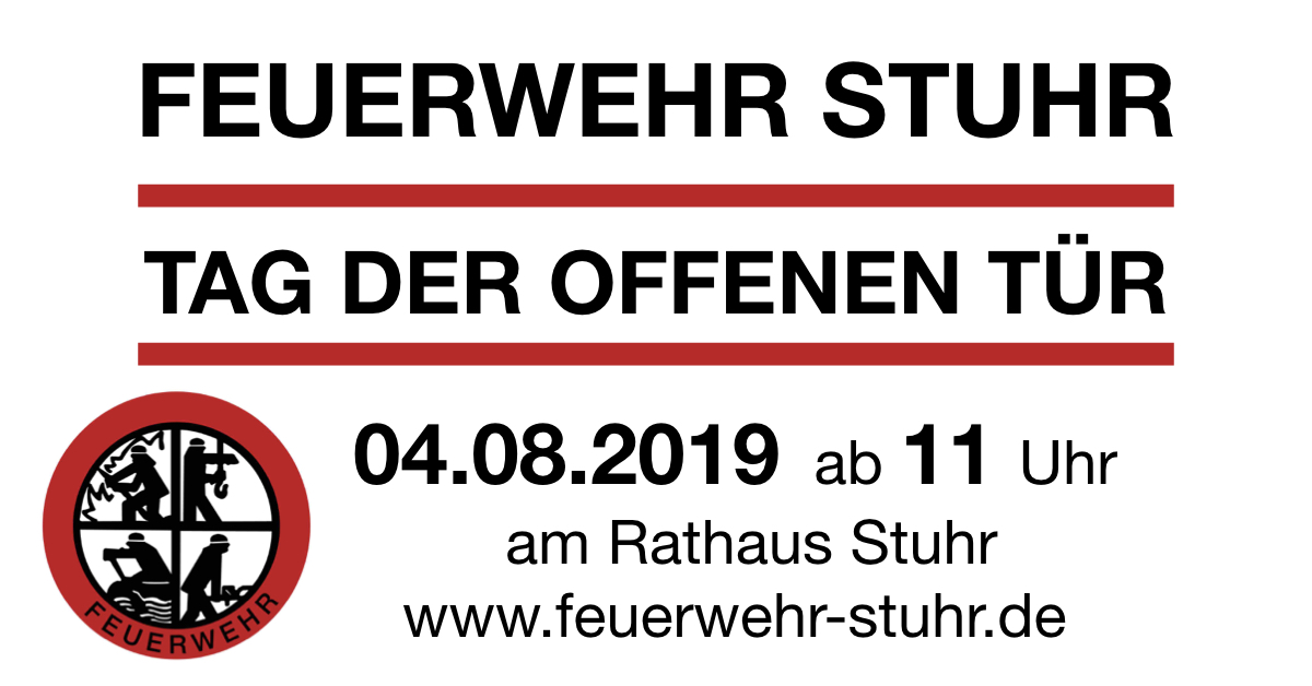 Am 04.08.2019 ab 11 Uhr findet der Tag der offenen Tür der Feuerwehr Stuhr statt. Veranstaltungsort ist das Feuerwehrhaus in Stuhr, direkt hinter dem Rathaus.